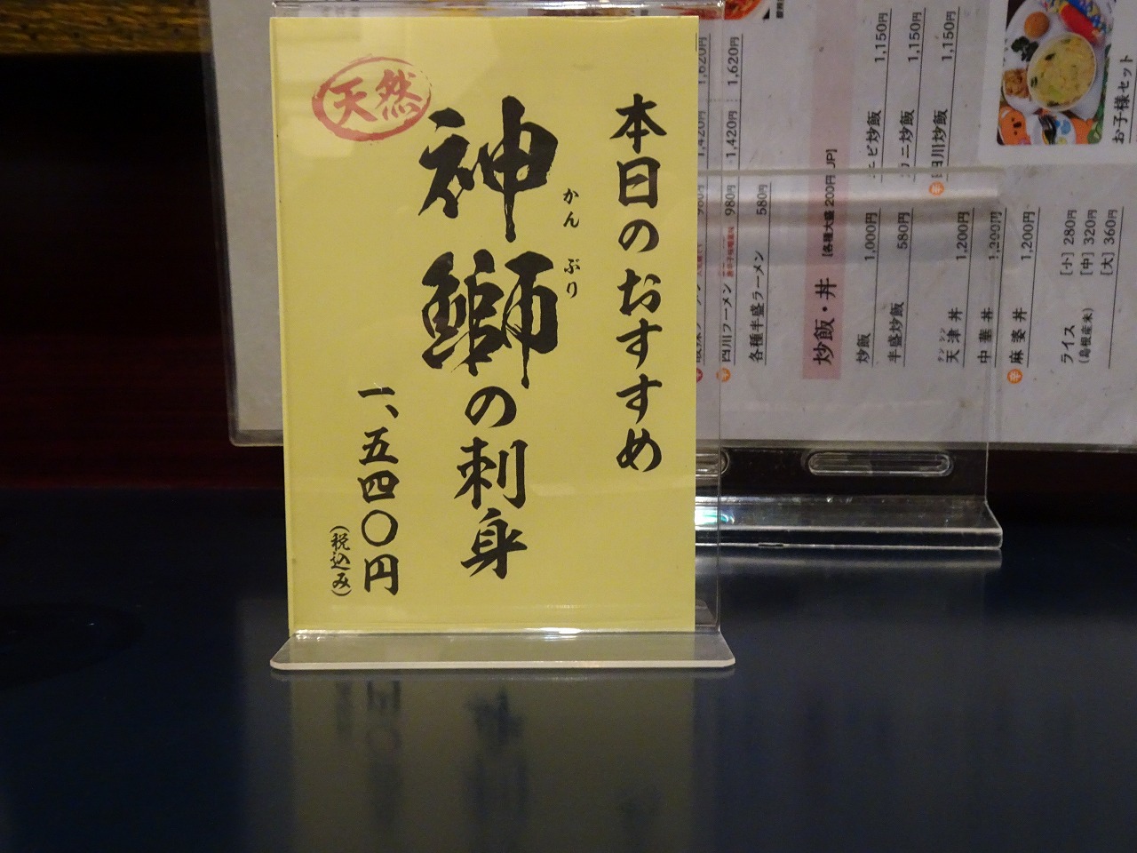 入ったら神鰤の刺身!脂が乗って美味しいだろうな〜!
