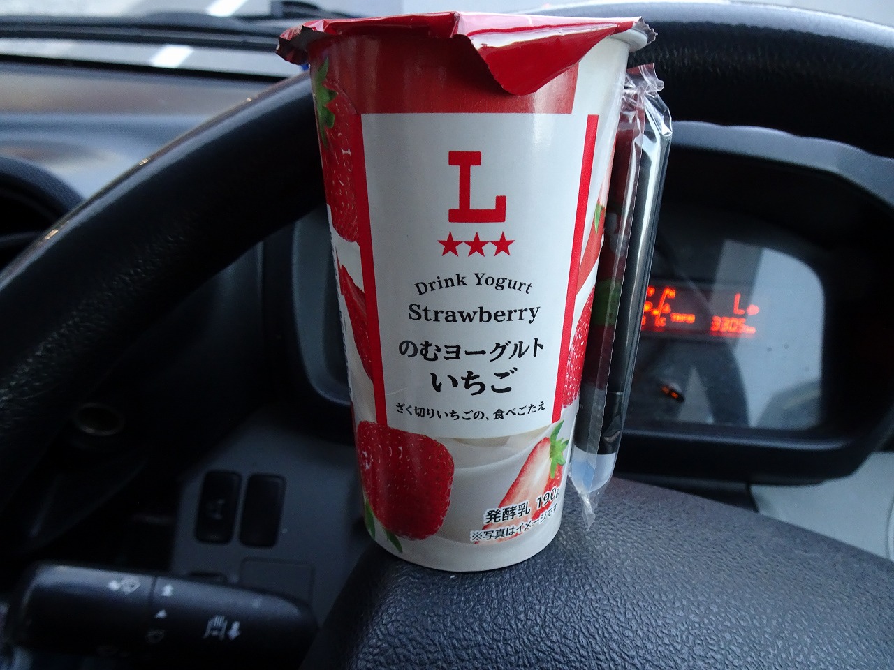 この日の朝飯は近くのローソンでいつものメニュー!そだどもヨーグルトはいちご味!