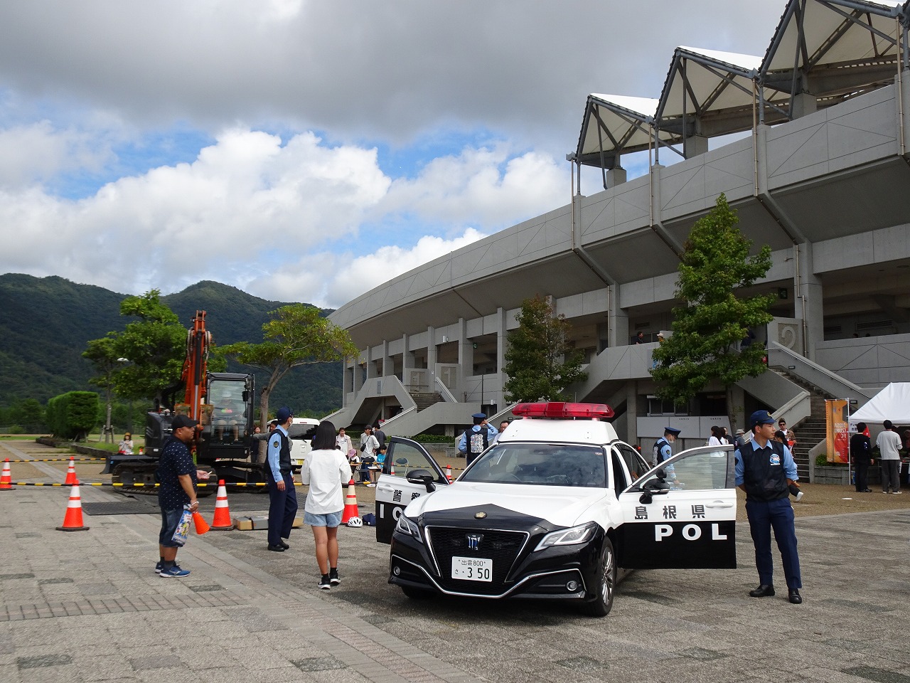 パトカーや重機も展示してあって、キッチンカーで食べ物ややメダカも売っとったずね〜!