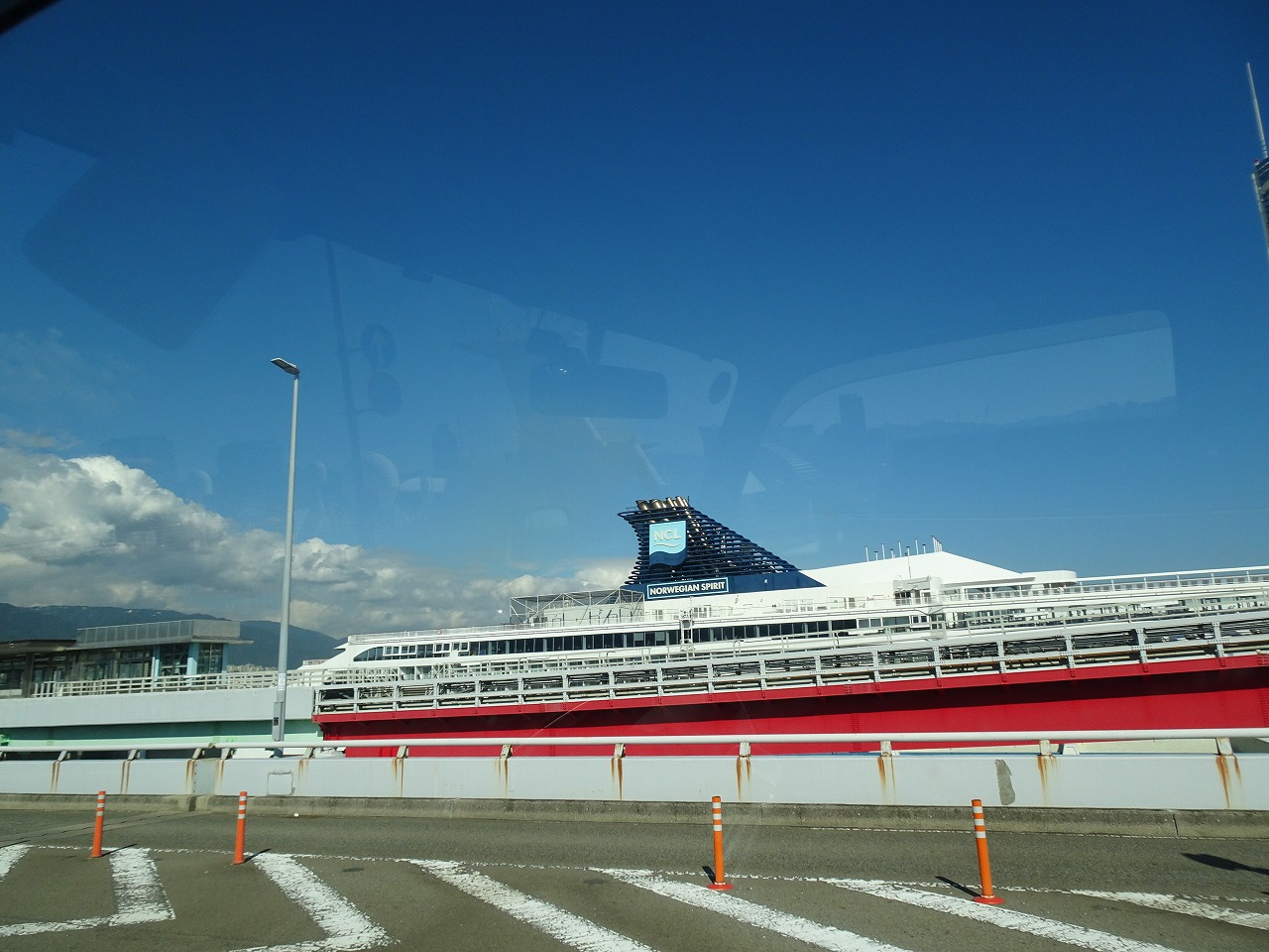 帰りに豪華客船が止まっとって、無事ベストに帰って695km走ったずね〜!