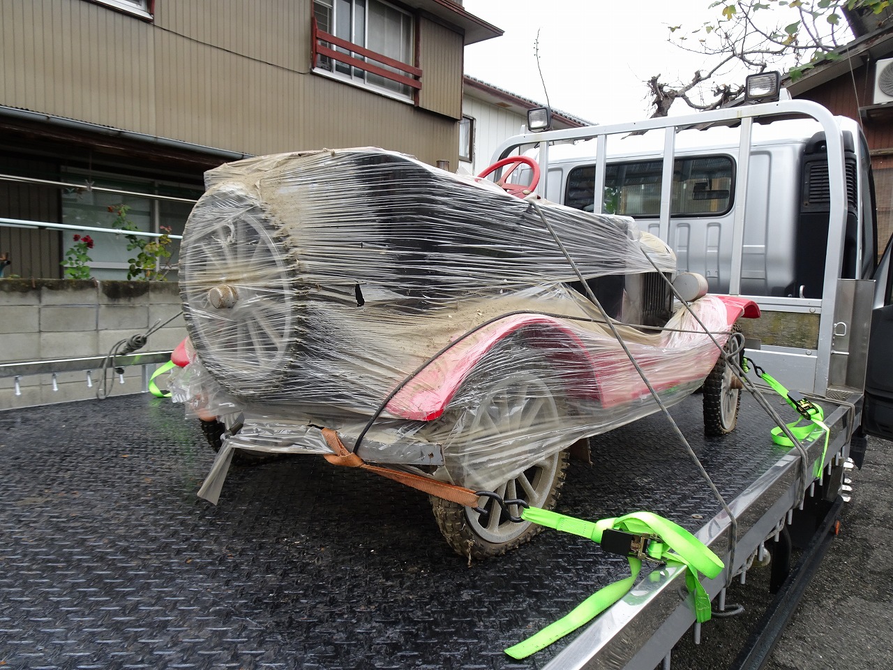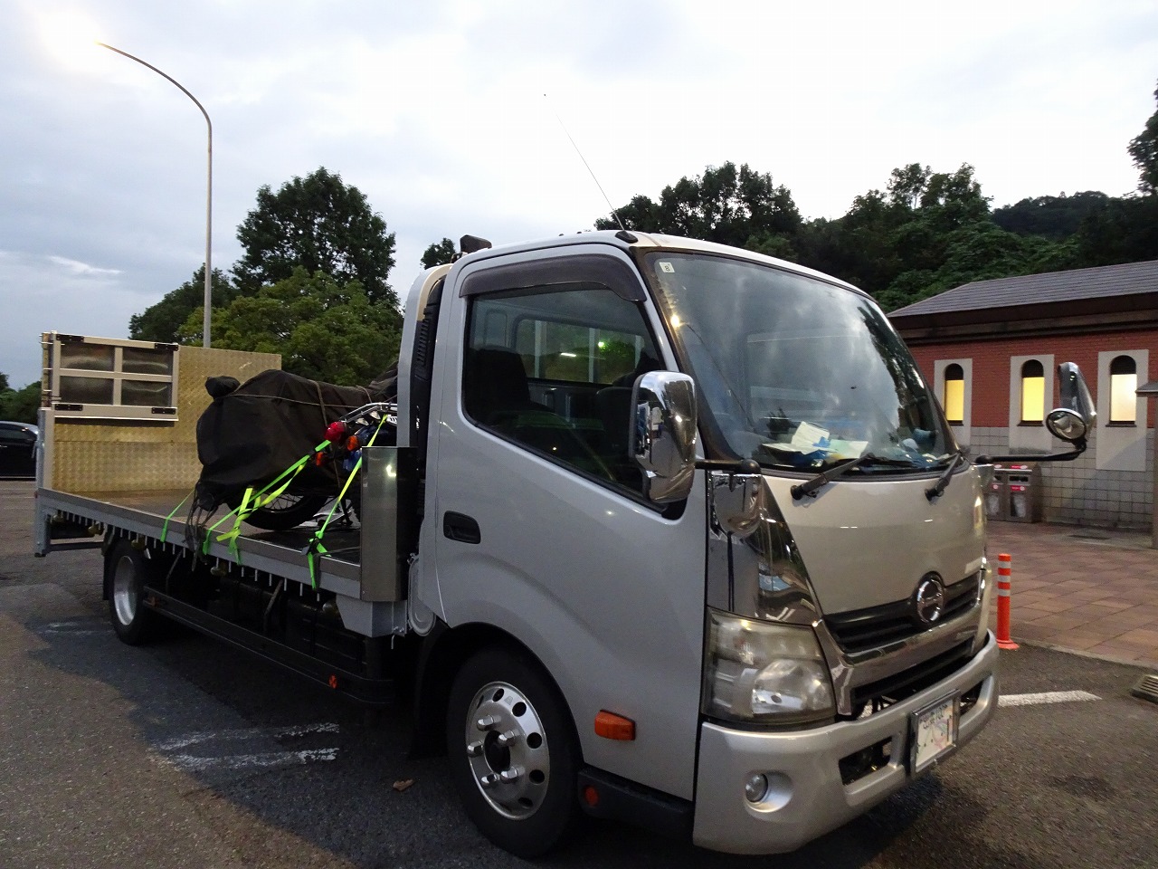 W1SA、CT110で積み込んで、雨が心配なのでシートカバー被せて積み込み完了!
