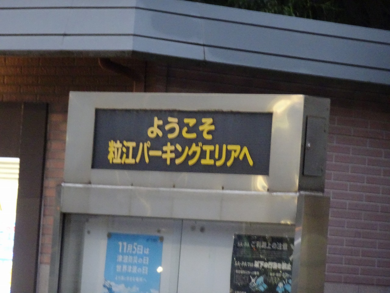 走ること粒江PAでちょっこす時間調整!それでも雨が降らんでよかったとまっしゃい!