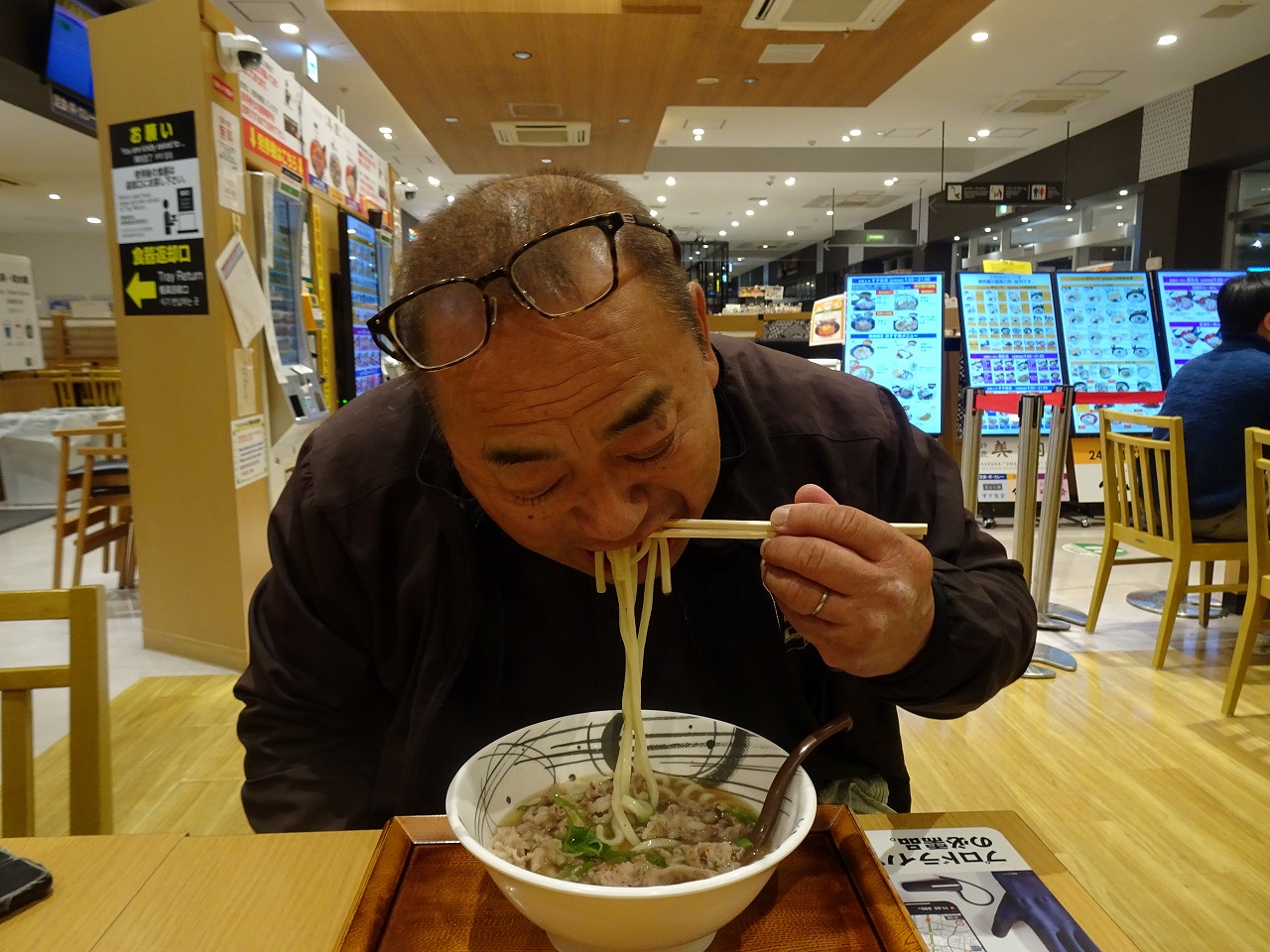 ここまで運転ご苦労様です!Mは腹一杯になると眠くなるので松坂牛の肉うどん!