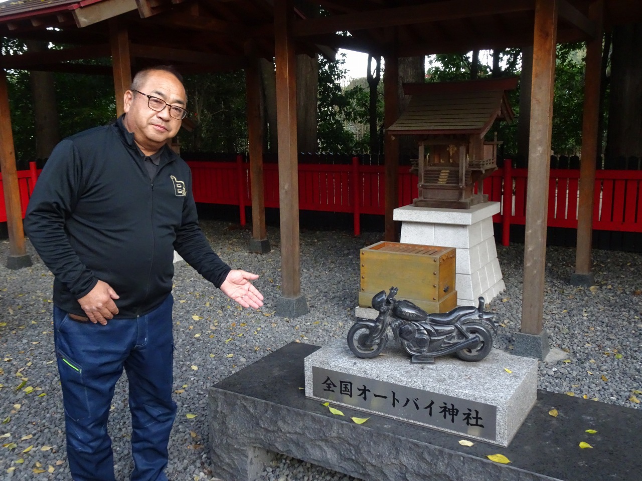 起きて隣のオートバイ神社参拝!1時間くらいしか寝てないのにMは朝から元気です!