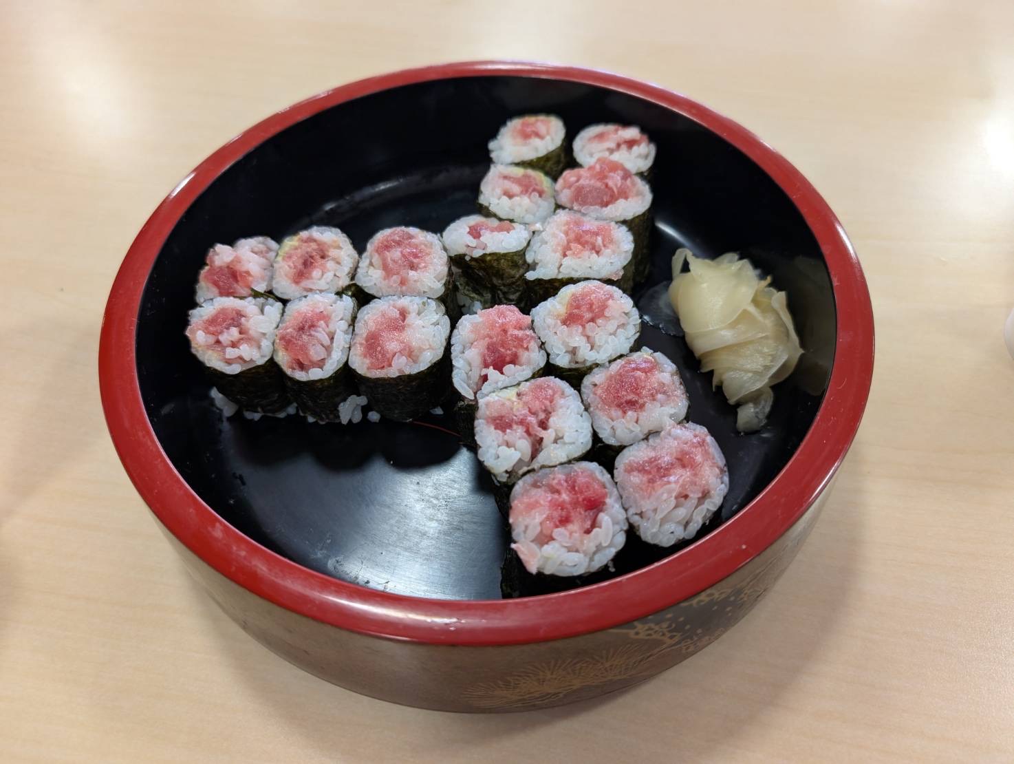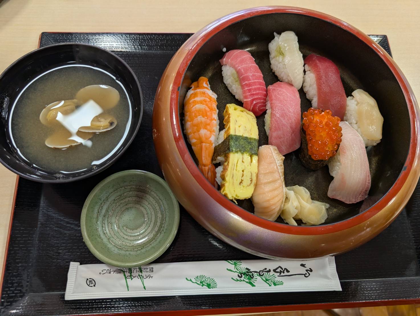 お昼は食堂の柏寿司でお寿司です!!久しぶりに来たらサービスの寿司もいただきました!お腹いっぱいです!