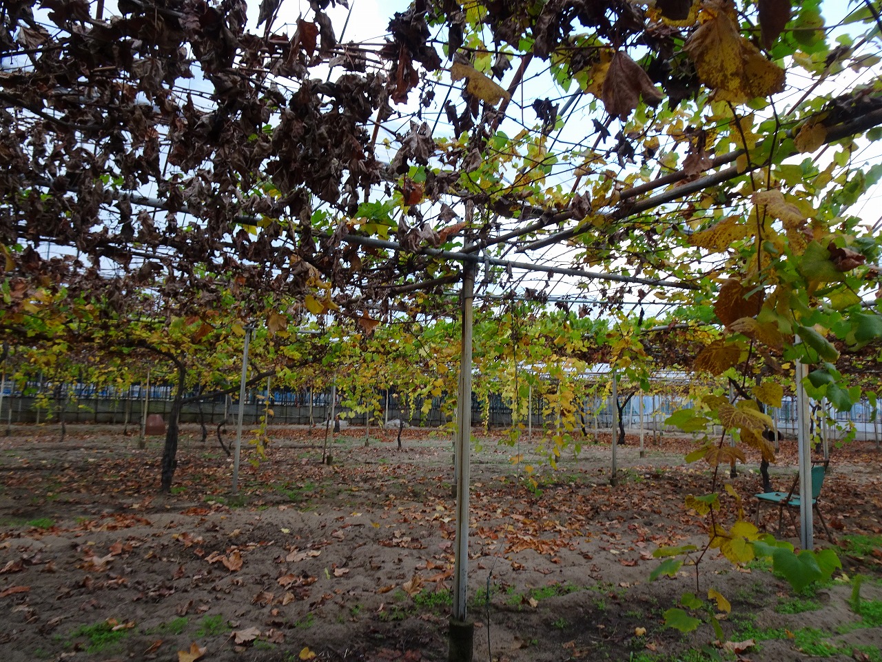 親父のぶどう畑行ったらもう葉っぱも枯れて、ちょんぼ草も生えて剪定と草取りせんといけんわ〜!