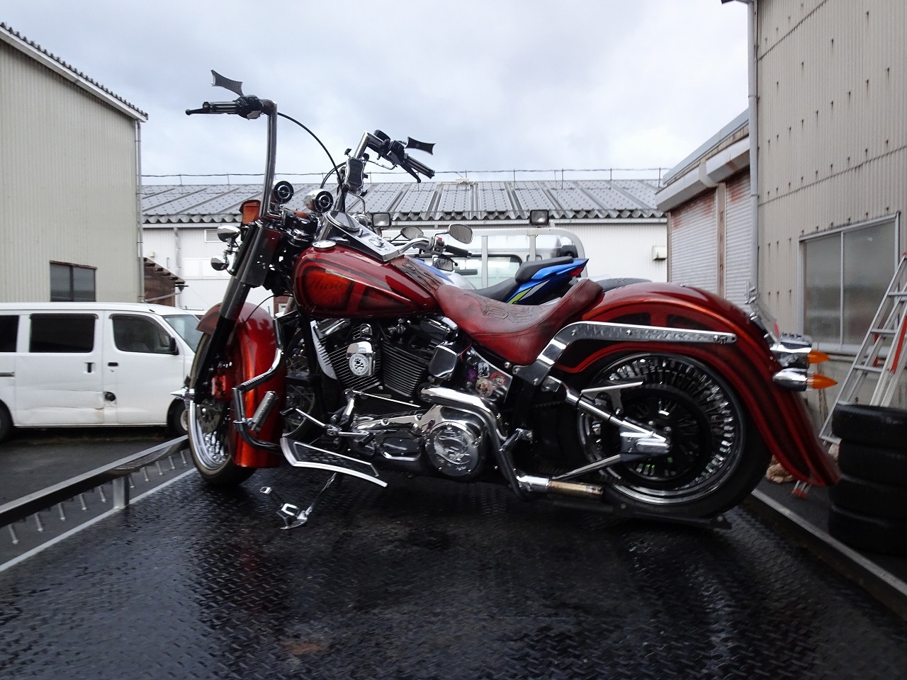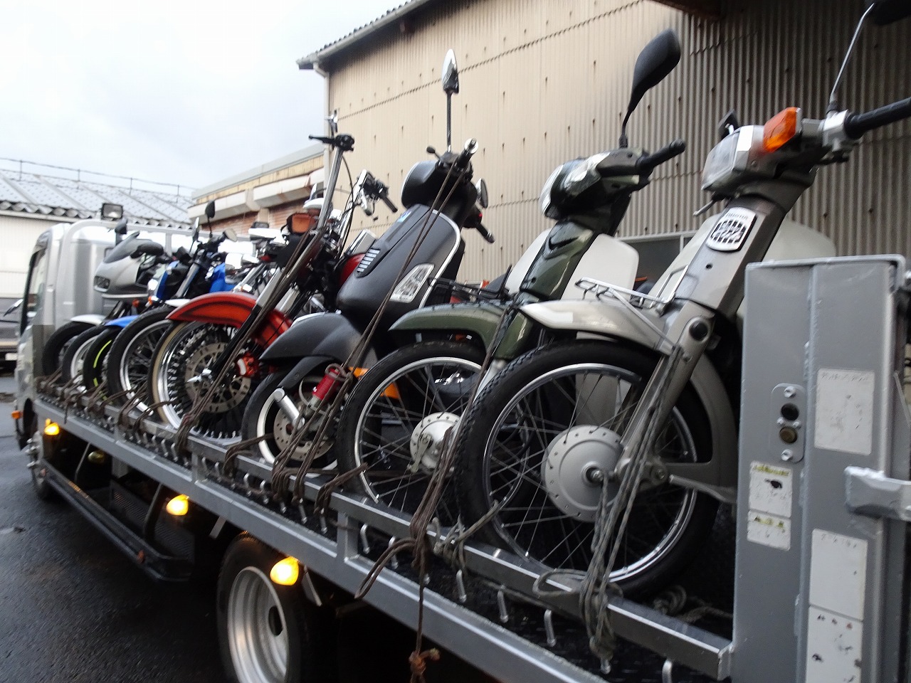 まずは鳥取でハーレー積んで、積み替えして出発です!