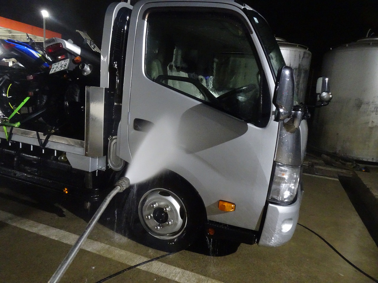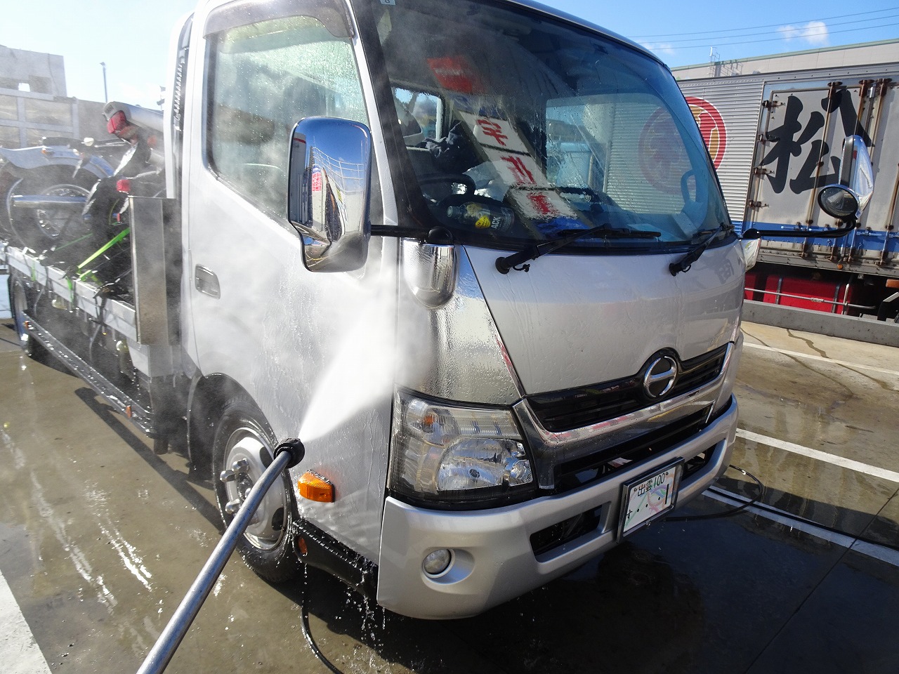 トントントントン日野の2トンも腹一杯にして、ここでもスチーム洗車!綺麗になったずね〜!