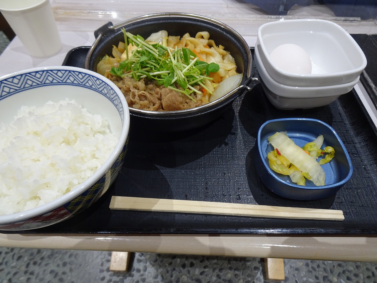 この日の晩飯は吉野家!ここは蕎麦があったに無くなったとまっしゃい!蕎麦がないけん、すき鍋!