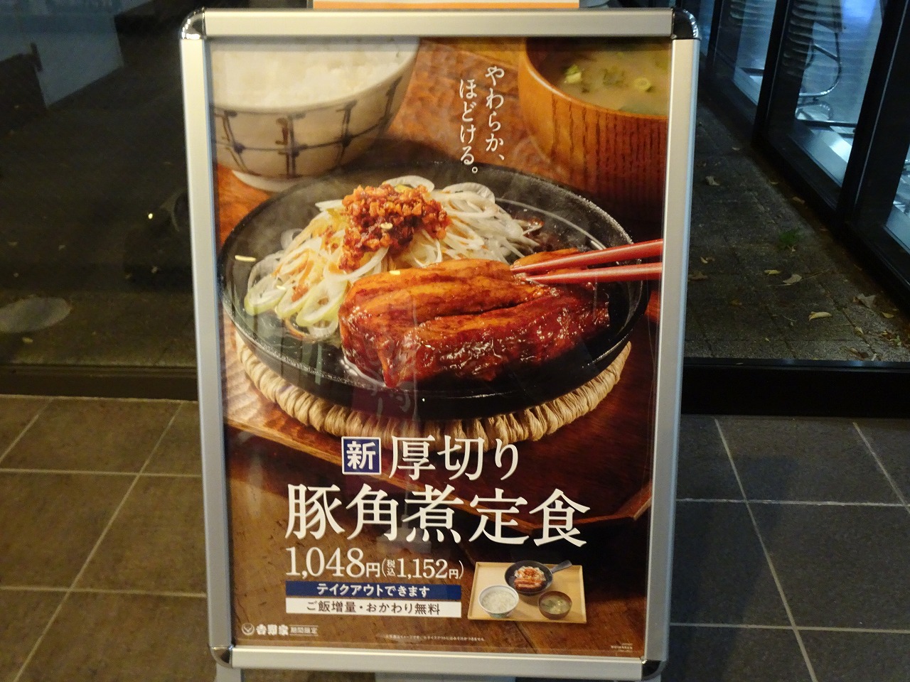 新メニュー厚切り豚角煮定食だと〜!SAに吉野家があると安くていいわ〜!