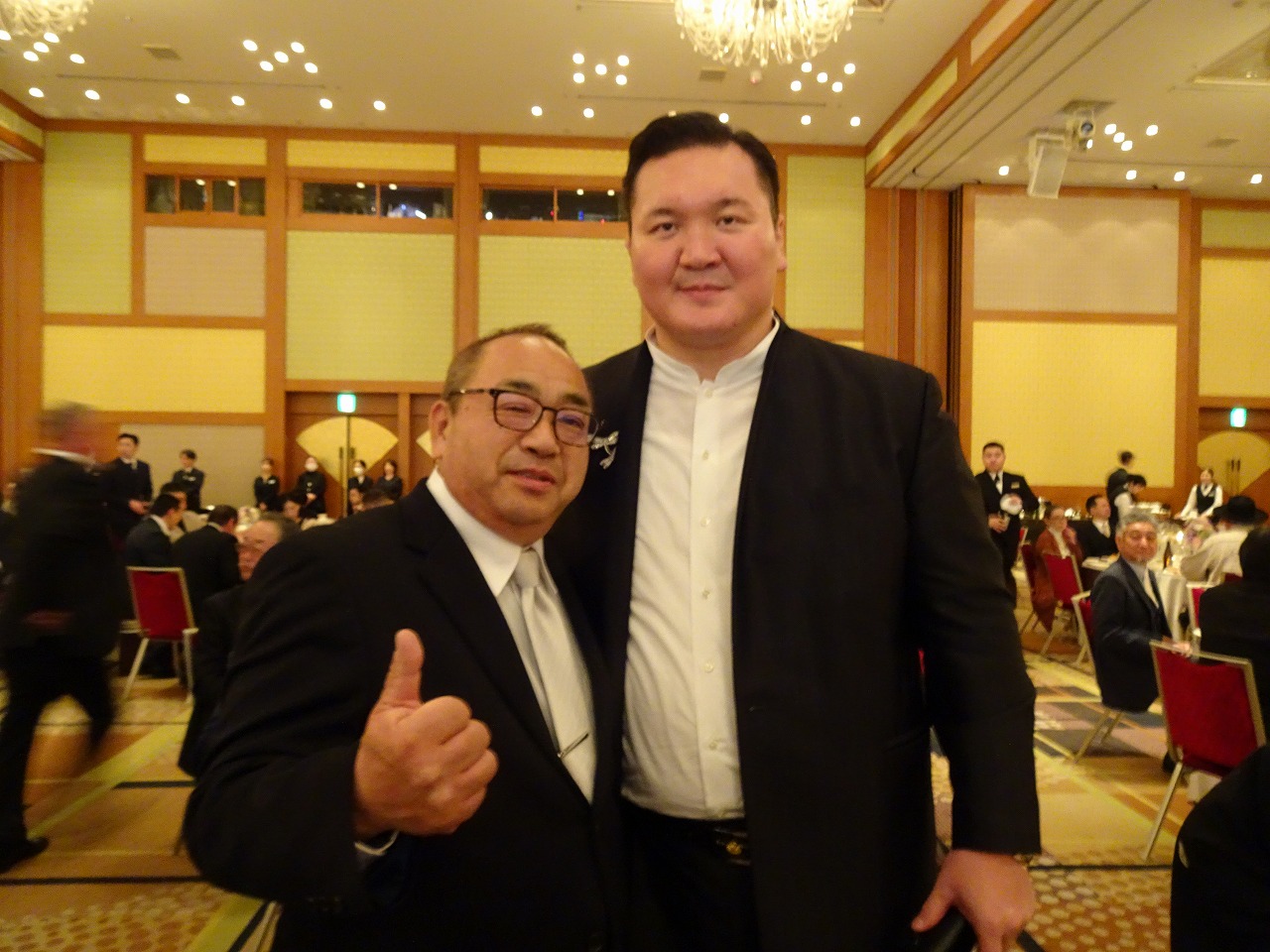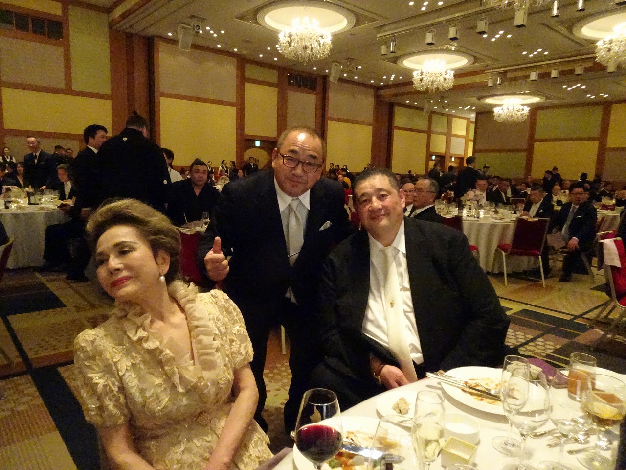佐渡ヶ嶽部屋の親方とデヴィ夫人とスリーショットお願いしたども聞こえんかったさでこんな写真になったわ〜!
