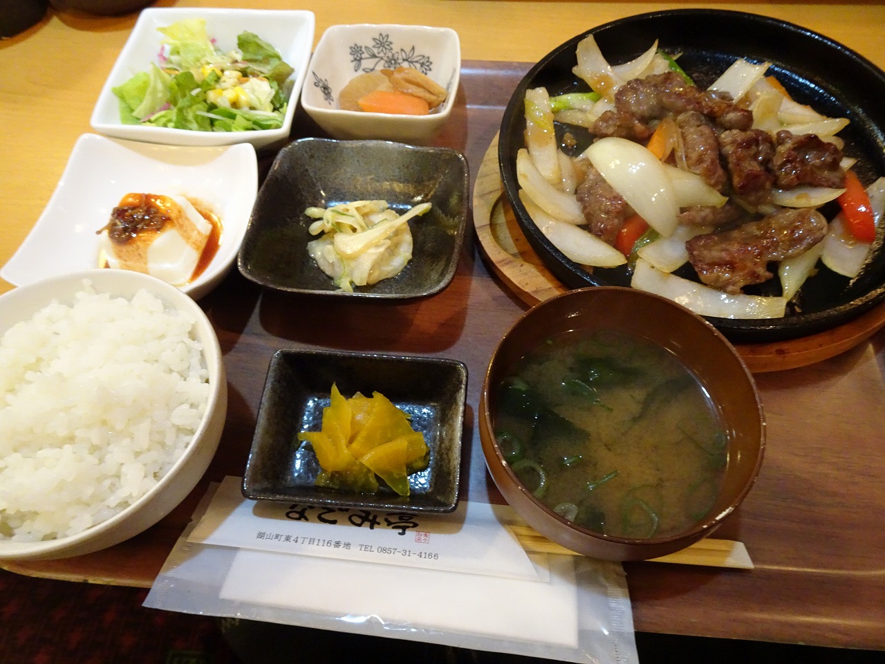 バイク積んで、近くのなごみ亭で焼肉定食よばれたずね〜!ごっつおだったとまっしゃい!