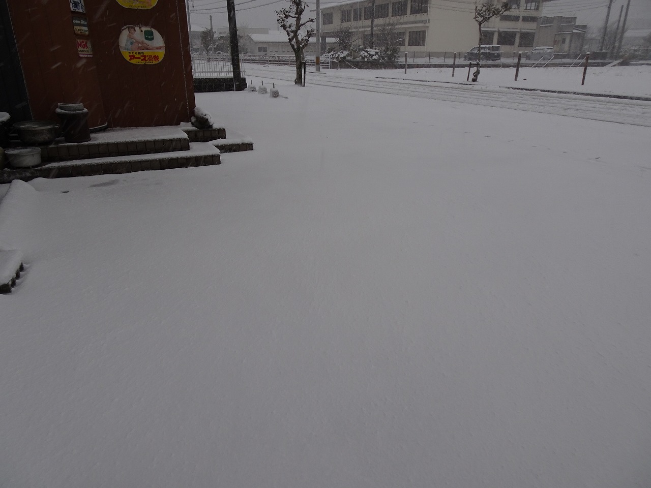 朝はこんな感じでしたが、午前中どんどん積もって大雪になりました〜!