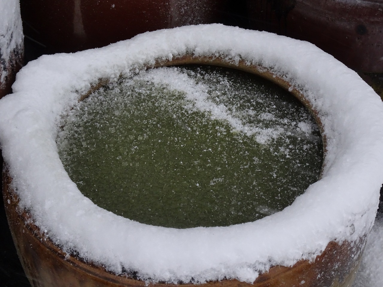 メダカの瓶もこんな感じでもちろん凍結!