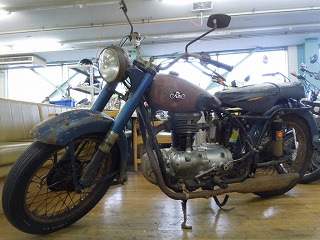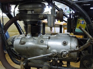 ド迫力のエンジン!! タンクに陸王を象徴するエンブレムも付いてます。 今後レストアが始まったら、またアップします。 乞うご期待!!!!!!